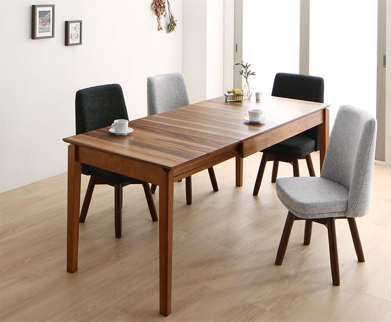 伸長式 ダイニングセット 5点セット(テーブル+チェア4脚) W120-180 ダイニングテーブル ダイニングチェア ダイニングベンチ 北欧 モダン 4人用 4P おしゃれ 伸縮式 回転椅子 回転チェア グレー ブラウン ウォールナット ファブリック 食卓セット アームレス |