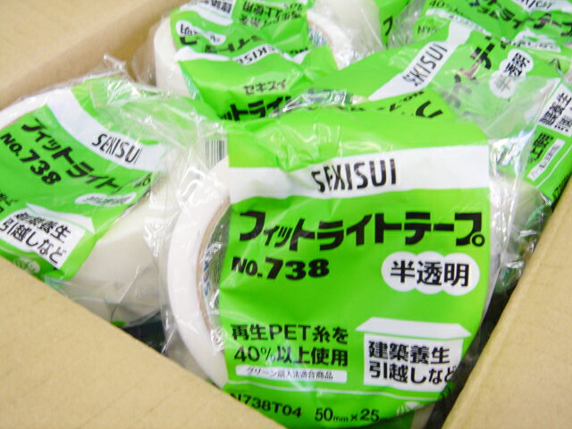 【2万円以上で送料無料】セキスイフィットライトテープNo.738 50mm巾×25m巻 30巻入 1ケース(半透明・ナチュラル)養生テープ |