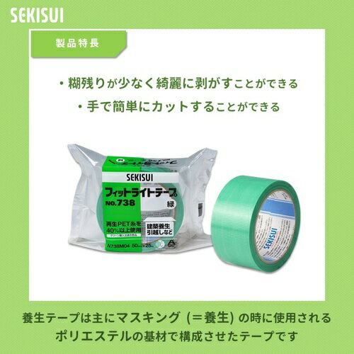 積水 フィットライトテープ #738 グリーン 50mm×25m【N738M04】(テープ用品・養生テープ) |
