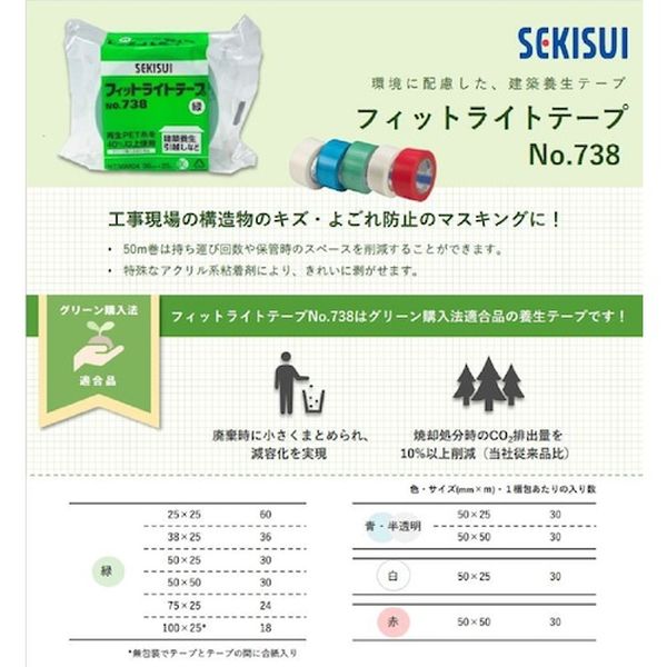【まとめ買い10個セット品】フィットライトテープ #738 50X50 N738M14 ミドリ 1個【メイチョー】 |