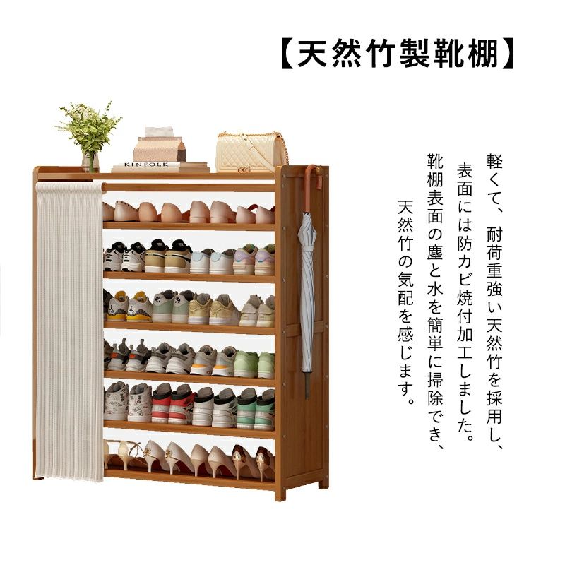 靴箱シューズラック 竹製 幅50/70/100cm 棚5/6/7段 省スペース コンパクト大容量 靴棚 靴収納ラック 靴置き カーテン付き 収納キャビネット 省スペース スリム 多層 おしゃれ 防塵 通気 防臭 玄関収納 靴入れ 安定性 |