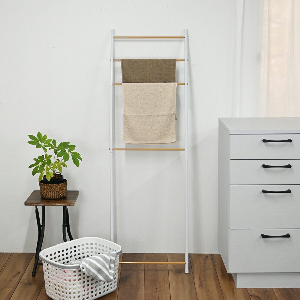 最大2000円OFFクーポン配布中 02/01(日)00:00〜 タオルスタンド 幅47.5cm はしごラック タオルハンガー ハンガーラック おしゃれ ラダーハンガー はしご型ラック 引っ掛け 収納 見せる収納 玄関収納 リビング収納 少量 洗濯干し |