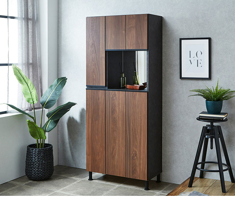 シューズボックス ハイタイプ 幅75cm ミラー付き 国産 完成品 奥深 靴箱 下駄箱 シューズラック 玄関 収納 大川家具 おしゃれ 北欧 玄関収納(代引不可)【送料無料】 |