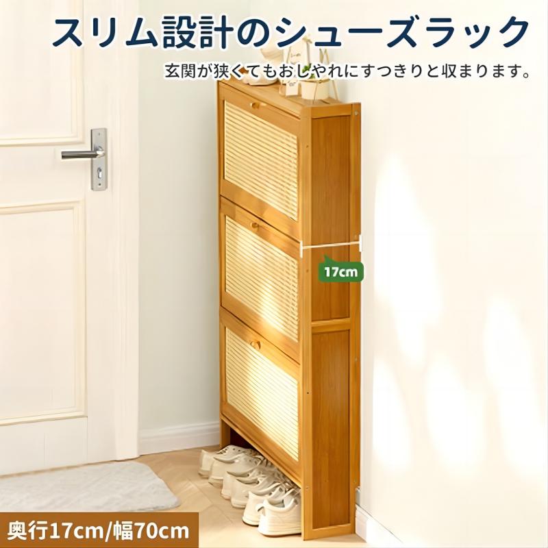 kamelun シューズボックス 薄型 スリム 幅70CM 3段 大容量 靴箱 下駄箱 シューズラック 通気性 天然竹製 玄関収納 収納家具 省スペース 奥行 17CM コンパクト 2年保証 送料無料 |