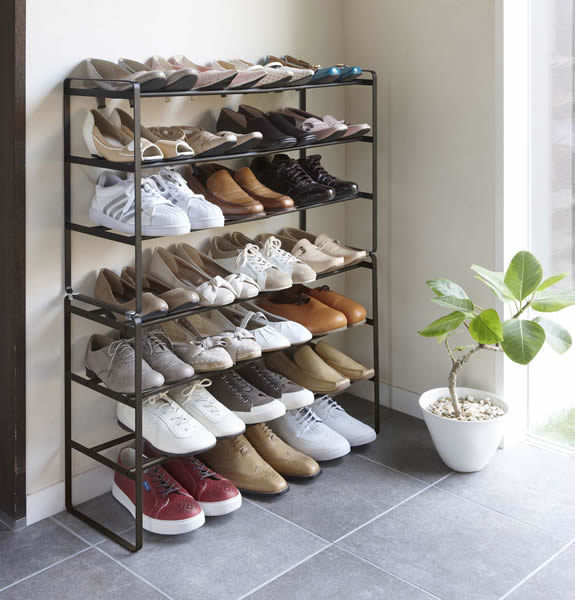 山崎実業 靴 収納 フレーム 伸縮シューズラック 3段 ブラック 2個セット 7556 | 伸縮 靴箱 玄関 おしゃれ くつ 下駄箱 玄関収納 大容量 |