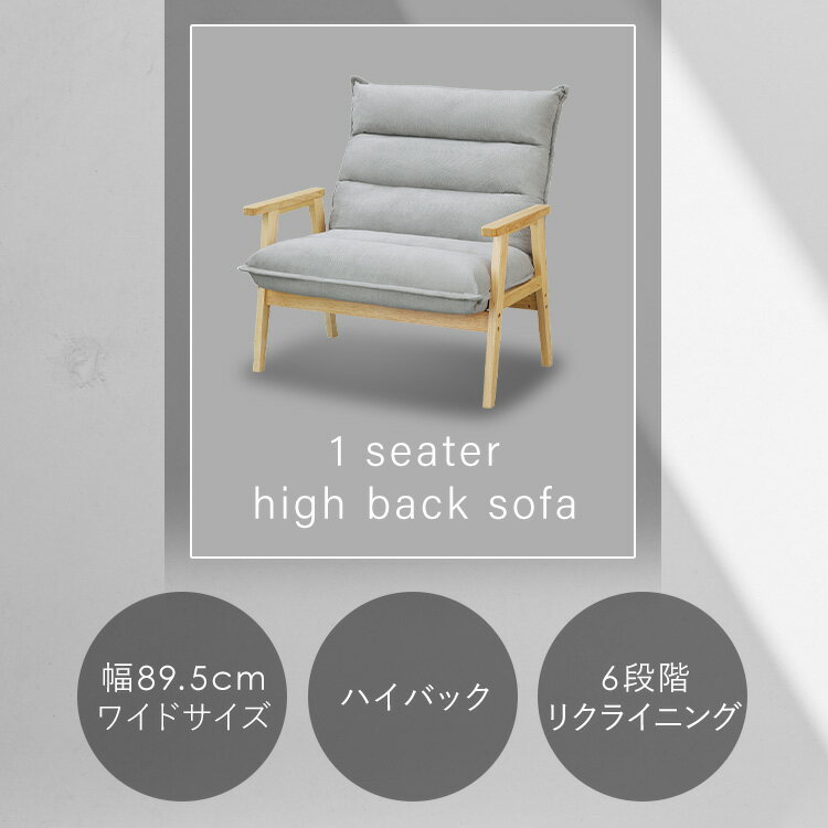 1人掛ハイバックソファ(布地)ローソファにも、ポケットコイル使用、3段階リクライニング 日本製|lemmik-レミック-【代引不可】 [03] |