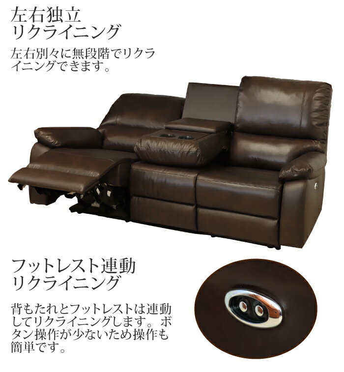 2人掛ハイバックソファ(PVCレザー)ローソファにも、ポケットコイル使用、3段階リクライニング 日本製Comfy-コンフィ-【代引不可】 [03] |