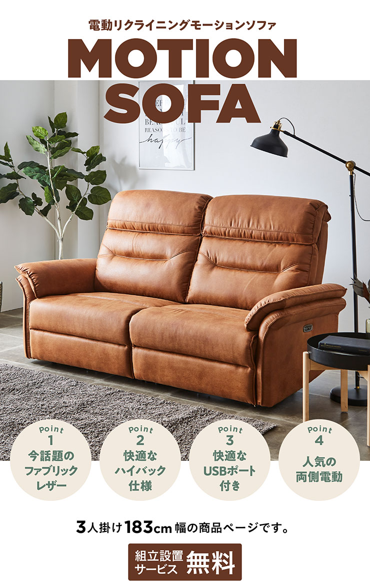 【ポイント8倍!本日12時開始】【搬入・組立設置付き】電動モーション リクライニングソファー 3人掛け 幅183cm 電動ソファー 電動リクライニングソファー 3人掛けソファー 三人掛けソファー ハイバックソファー シンプル 肘あり おしゃれ |