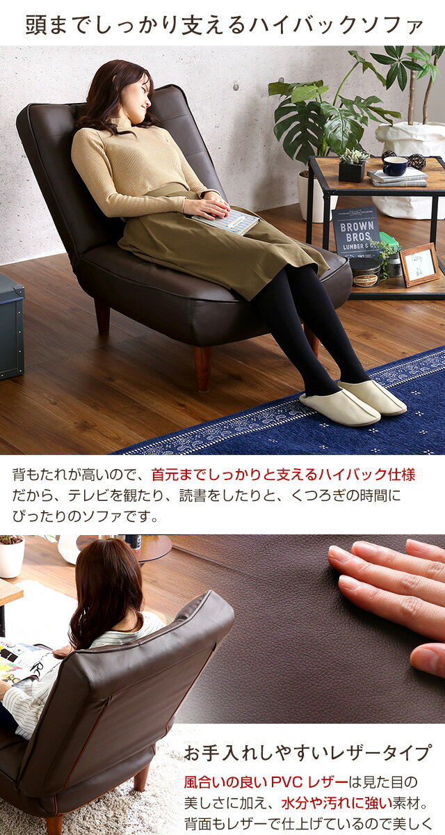 1人掛ハイバックソファ(PVCレザー)ローソファにも、ポケットコイル使用、3段階リクライニング 日本製|Comfy-コンフィ-【代引不可】 [03] |