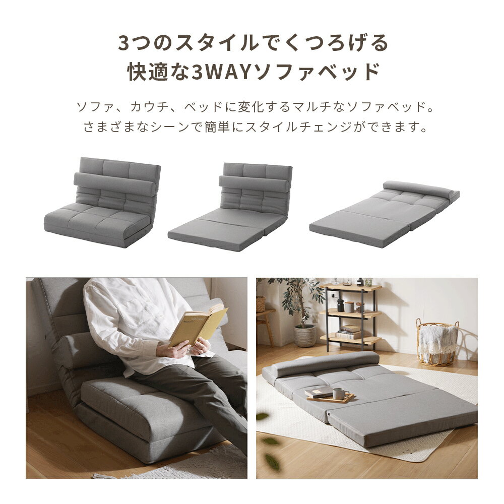 3WAY ソファベッド 2人掛け ダブル ソファ ベッド カウチソファ ハイバックソファ リクライニング 14段階ギア 日本製 疲れにくい ボリューム 昼寝 |