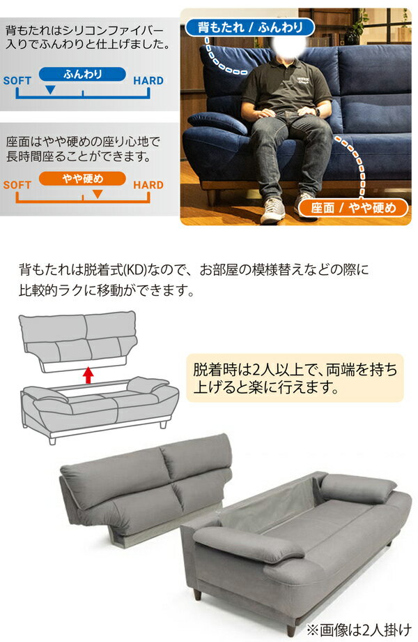 ソファ ソファー 幅170cm 2人掛け 二人掛け ハイバック ファブリック 撥水 脚付き 背もたれ脱着 脱着式 シンプル モダン おしゃれ ネイビー グレー |