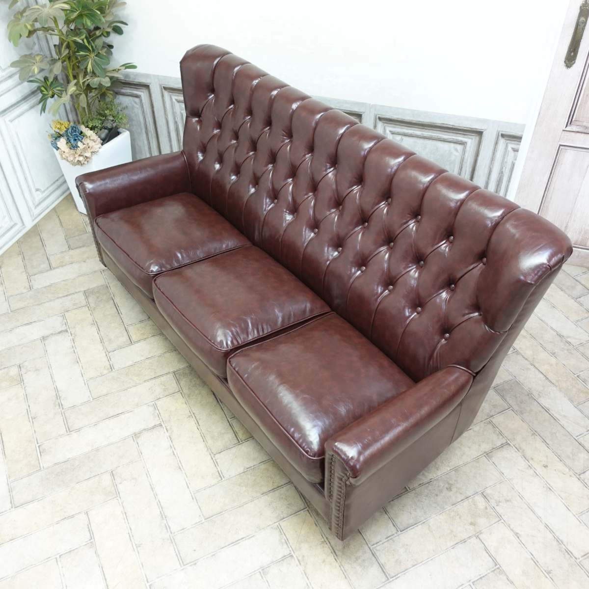 輸入家具 アンティーク ソファー そふぁ ヴィンセント ソファ ハイバック ソファ 三人掛け 3シーター アンティーク トリプルソファ チェスターフィールド ソファ 3人用 イギリス 英国 リビング 昭和レトロ 大正モダン フェイクレザー 合皮 PU ブラウン 茶 VH3P38K |