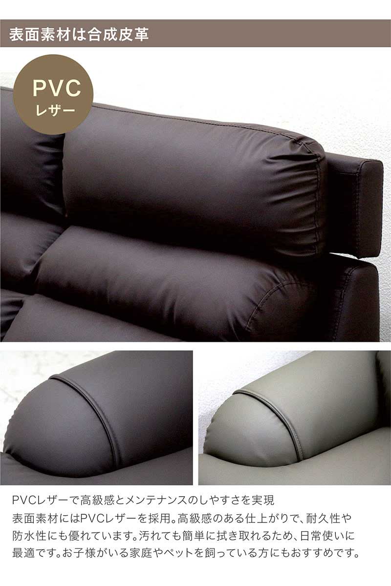 ハイバックソファー フロアソファー 2人掛け オットマン付き PVC生地 ブラック 脚部 ブラウン ポケットコイル使用 リクライニング 脚 取り外し可 日本製 リクライニングソファー 合皮【代引不可】 |