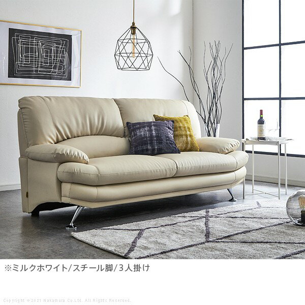 ハイバックソファ ソファ3P単品[本体:レザーxスチール脚] ハイバックソファー ポケットコイル カウチソファー 肘掛け 3人掛け 2人掛け 約幅190 応接ソファ 来客ソファ レザーソファ 合成皮革 送料無料 |