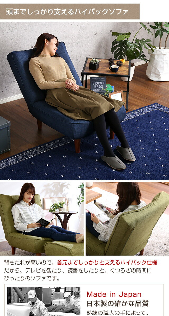 1人掛ハイバックソファ(布地)ローソファにも、ポケットコイル使用、3段階リクライニング 日本製|lemmik-レミック-【代引不可】 [03] |