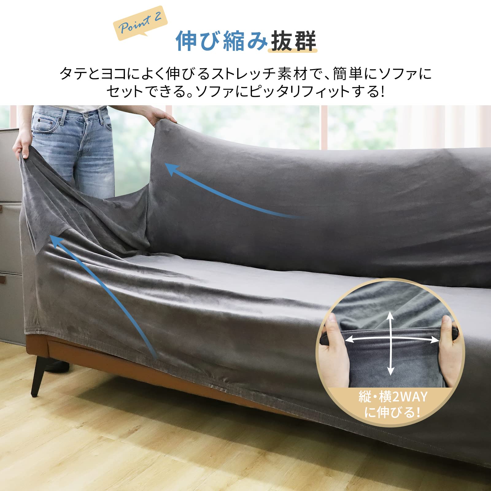 ソファーカバー 2人掛け 肘付き 「毛が絡みにくい素材」「爪研ぎ対策」「ペットと一緒にくつろげる新感触」肘付ストレッチハイバックソファカバー 一 |