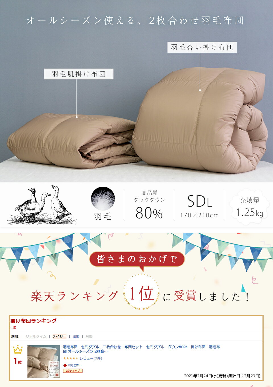 \お得!50%OFFクーポン/ 羽毛布団 セミダブル 2枚合わせ ダウン80% 掛け布団 セミダブル 羽毛布団セミダブル 羽毛布団セット セミダブル 羽毛布団 オールシーズン 2枚合わせ 布団セット 羽毛布団 セット 洗える布団 羽毛掛け布団 羽毛ふとん NENEKO |