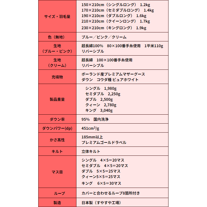羽毛布団 ポーランド産 ホワイトコウダ種 マザーグース ダウン率95% 山梨県(甲州)で作った高級羽毛ふとん 立体キルト 選べるサイズ シングル セミダブル ダブル クィーン キング プレミアムゴールドラベル ダウンパワー451 甲州羽毛布団 [超] |