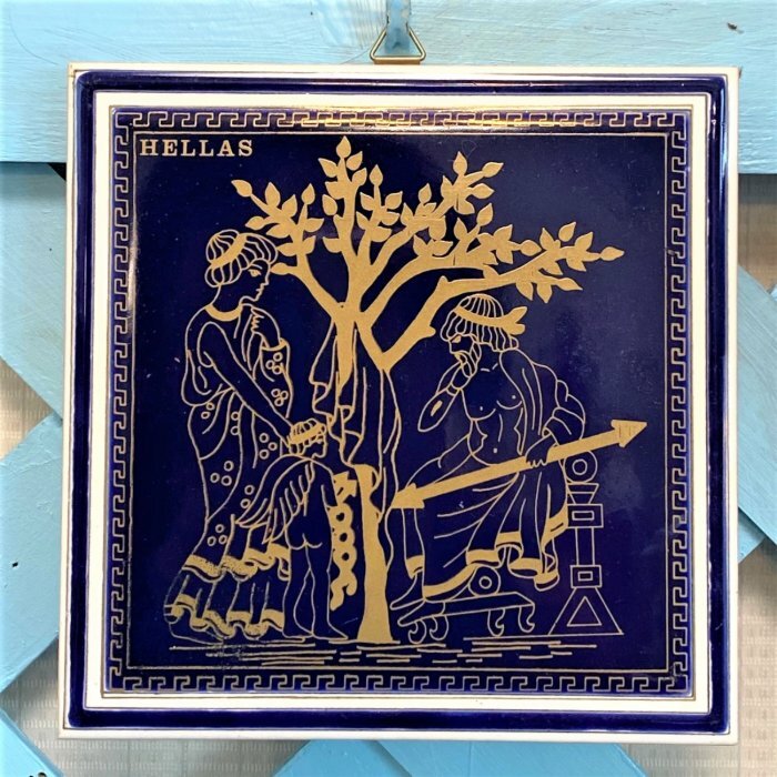 ギリシャ輸入 インテリアタイル 【ギリシア神話 藍色タイル】 (壁飾り)ギリシャ雑貨 インテリア小物置物 (鍋敷き...)キッチン雑貨 |