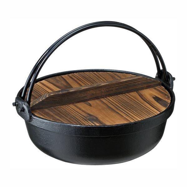 囲炉裏鍋 キャンプ 鍋 炭火 ガス火 鉄鍋 いろり鍋 天然木蓋付き 1人鍋 懐石料理 卓上鍋 すき焼き鍋 ツル付き 木製ふた付き 料亭 旅館 飲食店 |
