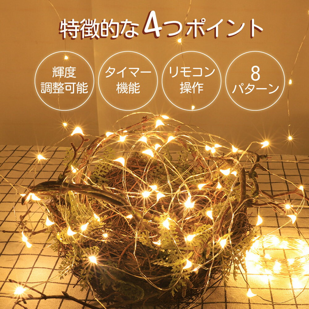 【楽天イーグルス感謝祭P5倍10%off】 電飾 100球 LED リモコン付 クリスマスオーナメント 10m 電池式 USB式 led ジュエリー ライトクリスマスツリー 8パターン 点滅 点灯 タイマー機能 電球色 イルミネーション 屋外 室内 ワイヤー フェアリー Cyberplugs |