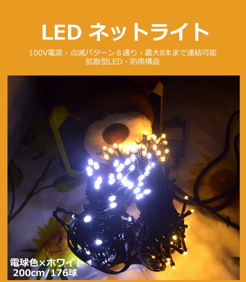 LED イルミネーション ライト クリスマス 照明 ネットライト ネットタイプ 176球/200cm/消費電力12W 点灯パターン 記憶 メモリー 付 連結可 8パターン点灯・コントローラ付 高輝度 高品質 クリスマスやイベントに最適!LEDテープ |