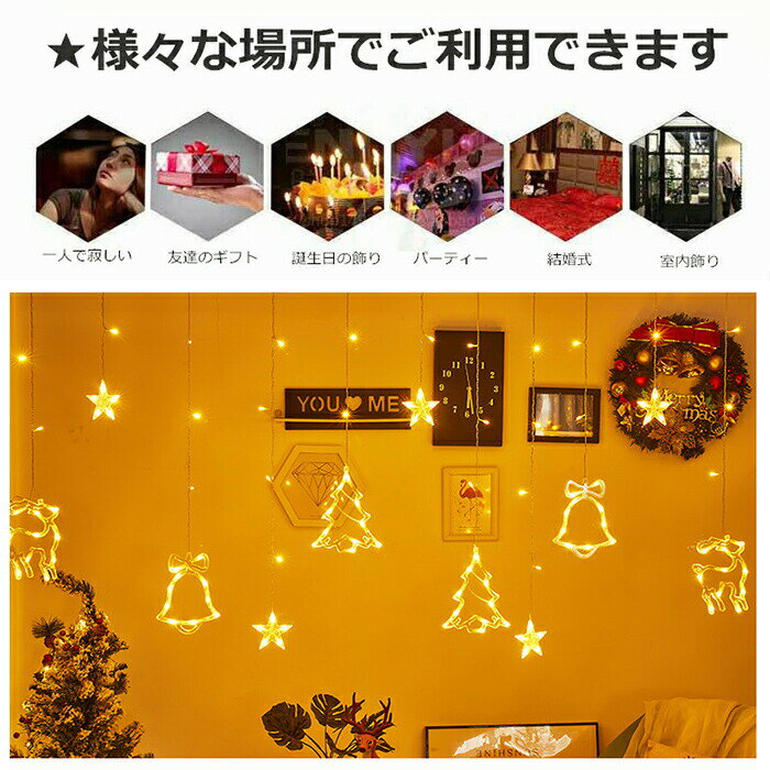 即納 カーテンライト LED クリスマス イルミネーション 長さ3.5m 電池式 ライト おしゃれ かわいい ワイヤーライト クリスマスライト LED トナカイ スター 星 鈴 クリスマスツリー ホームパーティー 吊り下げ飾り 寝室 送料無料 |