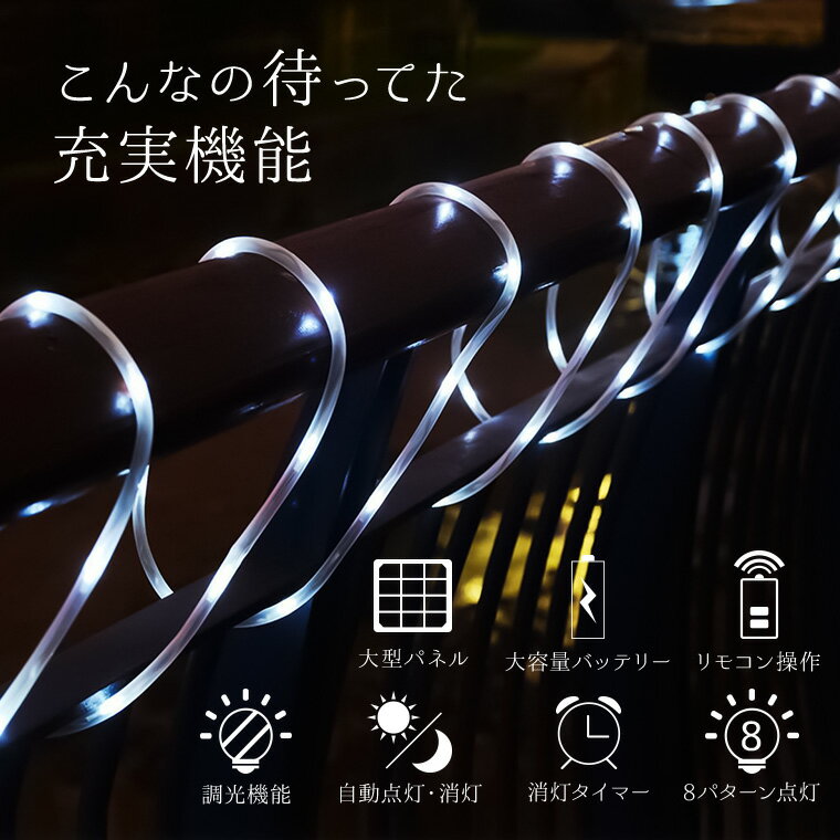 ソーラー イルミネーション チューブライト LED100球 長さ10m 全3色 リモコン付属 屋外用 防水 大型ソーラーパネル 大容量バッテリー ソーラー充電式 ライト おしゃれ ロープライト イルミネーションライト クリスマス ツリー 飾り付け ガーデン 玄関 防滴 キャンプ |