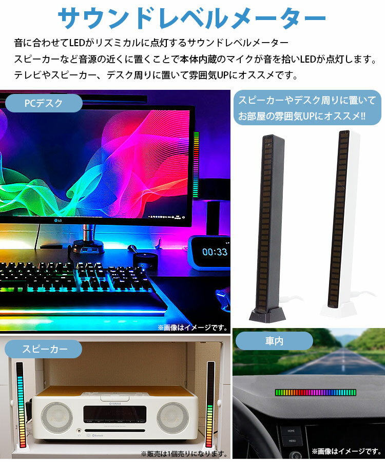 サウンドレベルライト メーター インジケータ USB給電式 LEDライト イルミネーション 車載 デスク スピーカー周り PR-RCSS10 |