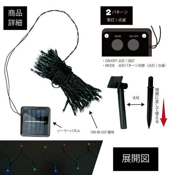 LED 100球 イルミネーションライト ブルー WJ-9152 ソーラー充電 屋外 屋内 兼用 自動点灯 ライト イルミネーション クリスマス ツリー 省エネ エコ(代引不可)【ポイント10倍】 |