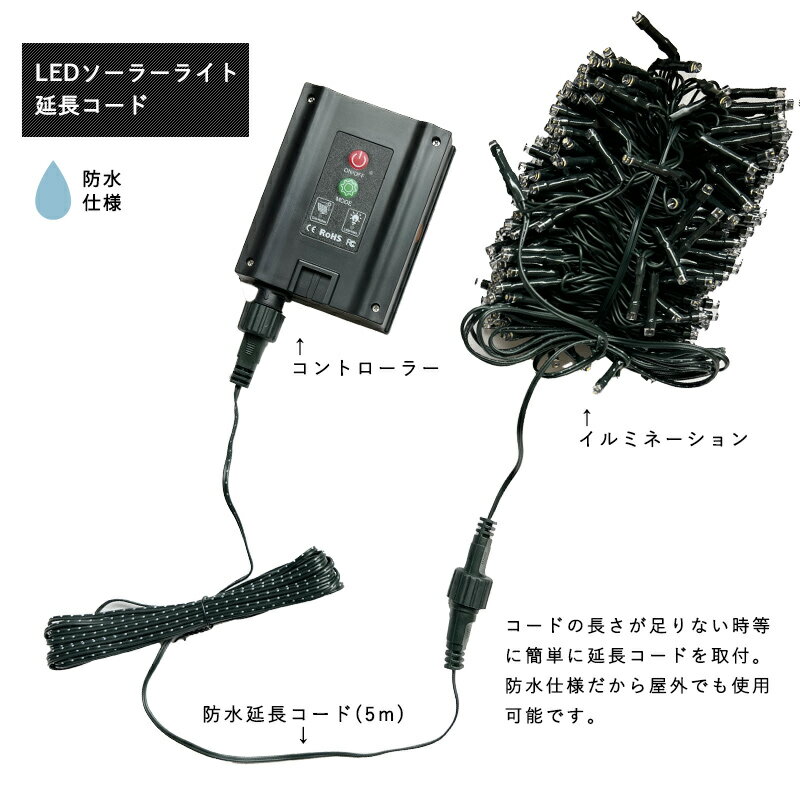 LEDソーラーイルミネーション用 延長コード 5m 延長 延長ケーブル 屋外 防水 防雨 ソーラーライト クリスマスライト デコレーション 電飾 屋外 電源コード DIY 照明 送料無料 |