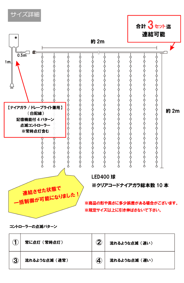 新LED400球 流れるナイアガライルミネーション (青白ミックス) ブルー&ホワイト カーテンライト クリスマスイルミネーション 電飾 クリスマスライト いるみねーしょん |