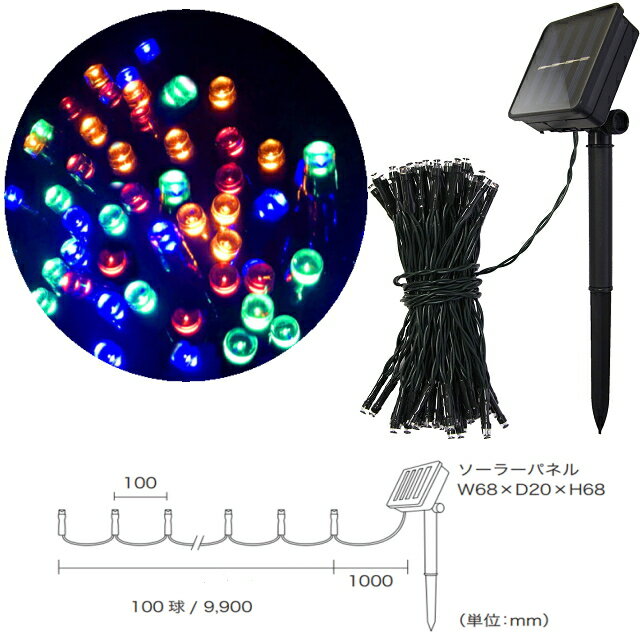 ソーラー充電式 LEDイルミネーションライト ガーデンライト 温白 12m 100球 ソーラーライト LEDライト 屋外用 防水仕様 Rk063 |