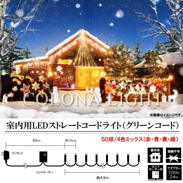 室内用 LEDストレートコードライト 50球/4色ミックス/グリーンコード SHG50MIX コロナ産業 [イルミネーション クリスマス] |