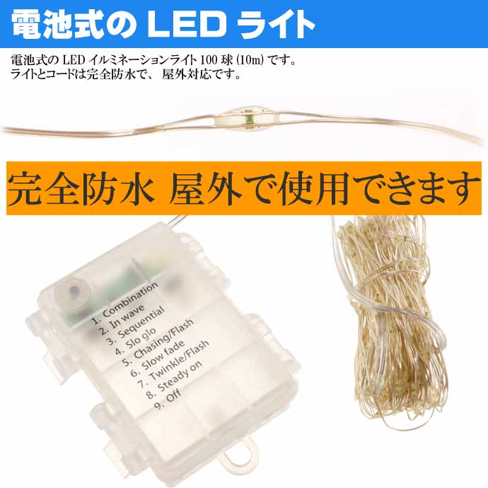 リモコン付き イルミネーションライト100球 10m ホワイト HAC HAC2874A 単三電池式 LEDライト 完全防水 屋外OK Ah190 |