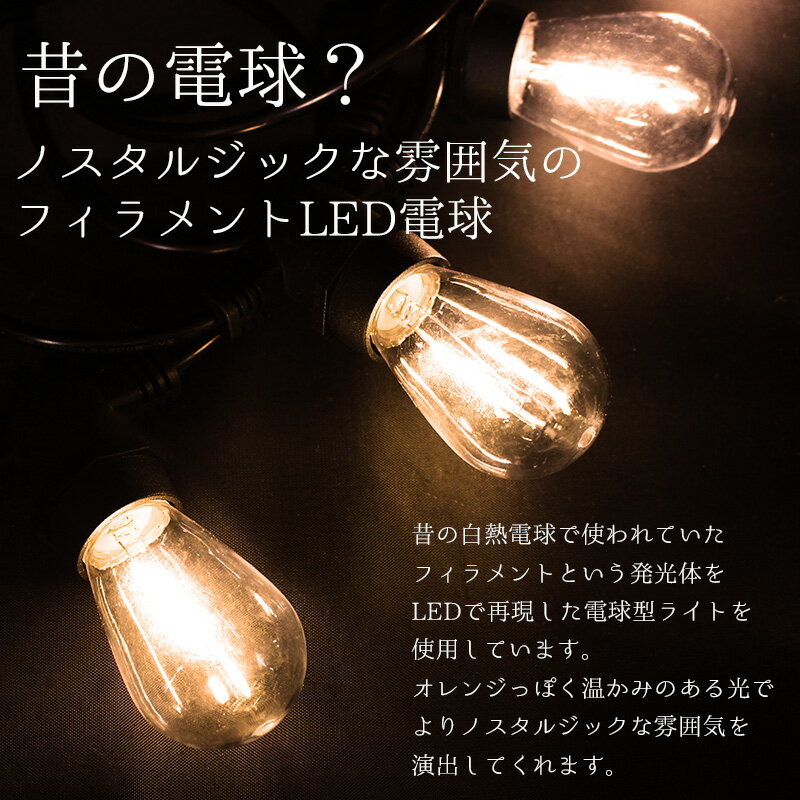 ソーラー ライト LED ストリングライト 15球 電球色 屋外 防水 USB 2WAY充電対応 イルミネーション ガーデンライト 電球型 約7.5m ソーラーバッテリー DC電源(USB給電)対応 点滅 フィラメント電球 |