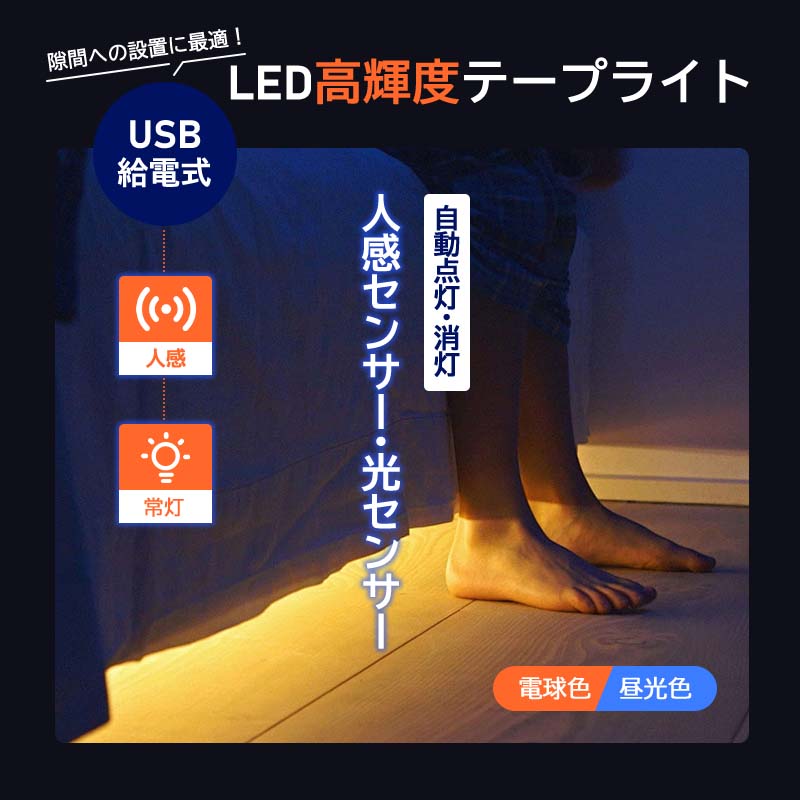 LEDテープライト 人感センサー付き J-J008【 1m 3m 5m 選択可】昼光色 電球色 屋内用 鮮やか 44キーリモコン 調光調色カラーDIY 超高輝度間接照明 両面テープ 取付簡単 店舗看板ゲーム部屋 間接照明 ホワイト 暖色系 ホワイト クリスマス 電飾 ledテープライト 防犯 |