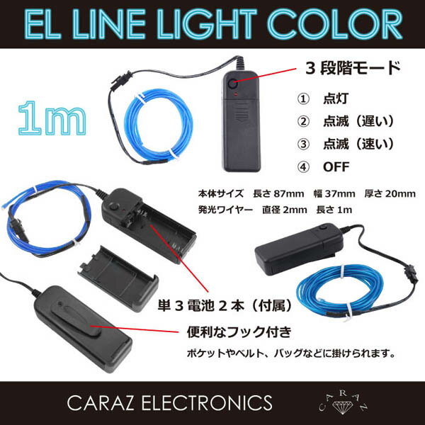 チューブライト LEDライト イルミネーションライト 電池式 3段階モード切り替え機能付き 装飾 ウェディング プレゼント 花束ライト ハンドメイド ELラインライト 1m 全10色 CE-EL1M メール便(ネコポス)送料無料 |