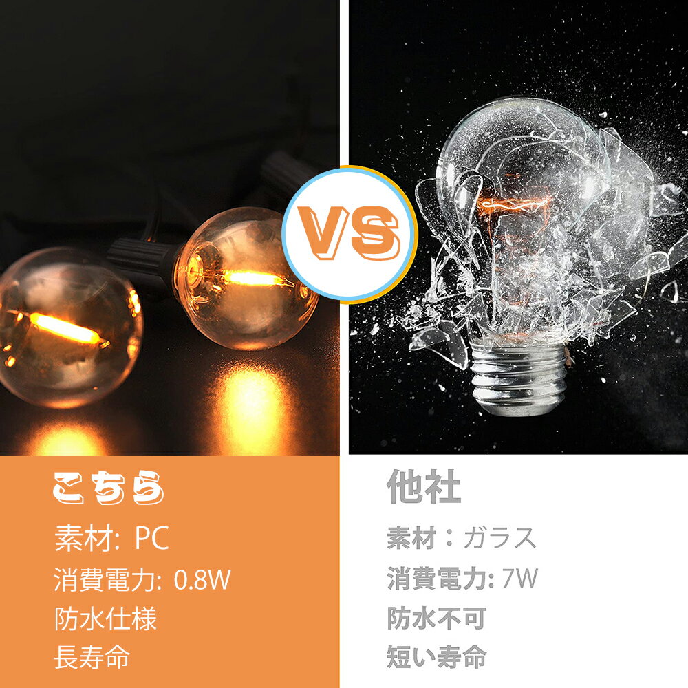 【最大11%オフクーポン使用可】LEDストリングライト 【5.5m 10個+2個予備電球 2年保証】イルミネーション 防雨型 電飾 コンセント式 電球色 E12口金 G40 LED電球 節電 PC素材 破損しにくい 屋内/屋外照明 キャンプ LEDガーデンライト 結婚式 庭 祭り 商店街 クリスマス |