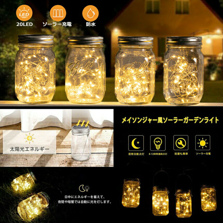 メイソンジャー風 ソーラーライト 屋外 ガーデンライト 3個セット ガラスソーラーライト イルミネーションライト 夜間自動点灯 led ソーラー 充電 省エネ 防水 LED ソーラー充電式 イルミネーション ガラスライト 屋外装飾 玄関 庭 芝生 バルコニー |