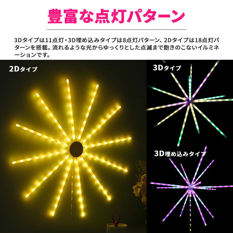 イルミネーション 花火 3D 2D マルチカラー USB電源 室内用 消灯タイマー 自動点灯 リモコン LED モチーフライト フェアリーライト クリスマス 電飾 かわいい 派手 飾り付け 装飾 壁掛け 吊り下げ コンセント モチーフ ネオンサイン |