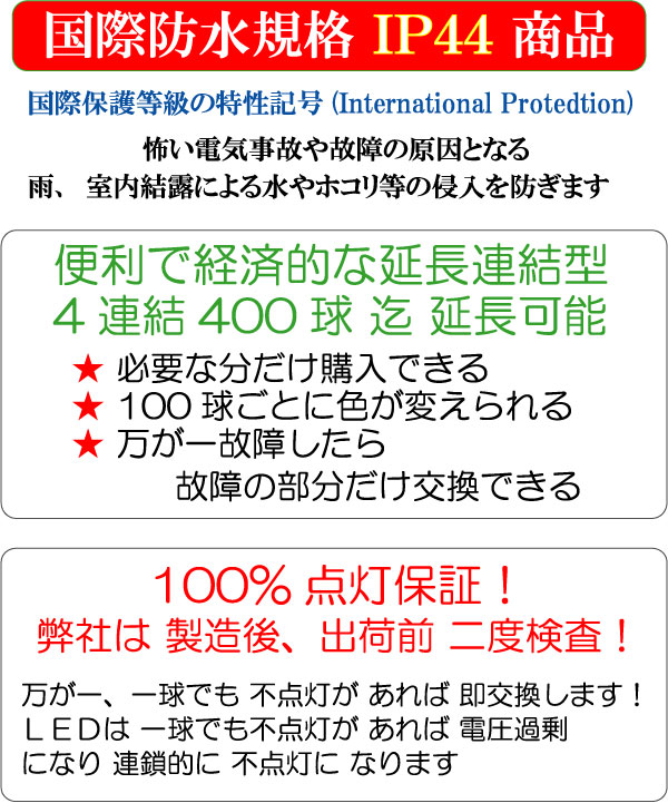 クリスマス イルミネーション LED 屋外用 100%点灯保証!送料無料条件付 防水 屋外用 安心安全の低電圧24v ライスゴールド 100球 電球色 【ス-ラ-フル】 延長連結型 LEDイルミネーション クリスマスライト 省エネ 節電 照明 防災 |