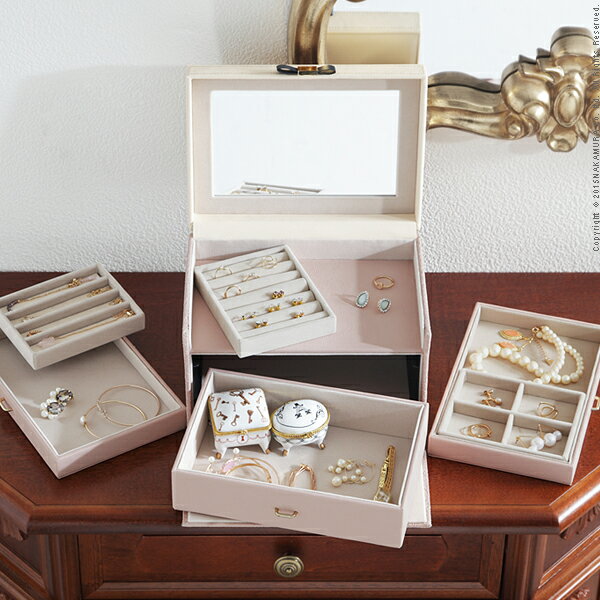 ジュエリーボックス アクセサリーケース 収納 鏡 ミラー付き3段収納 ジュエリーボックス 〔アラベスク〕 小物入れ 引出し ネックレス 指輪 ピアス |