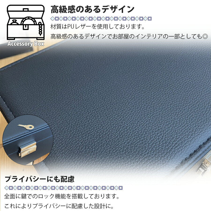 アクセサリーケース 【新型】 ジュエリーボックス お洒落 アクセサリー収納 2段 大容量 時計 指輪 ピアス ネックレス 鍵付き アクセサリートレイ 母の日 プレゼント 小物入れ 仕切り コレクション おしゃれ かわいい アクセサリー入れ シンプル レザー調 LB-170 区分60Y |