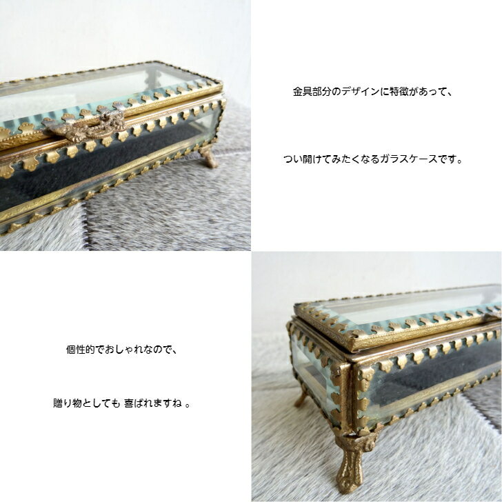 ガラスケース アクセサリーケース ガラスケース ボックス かわいい ゴールド 金色 小さい コンパクト アンティーク調 レトロ アクセサリー入れ 小物入れ アクセサリーボックス 贈り物【送料無料】ジュエリーボックス・ゴールド |