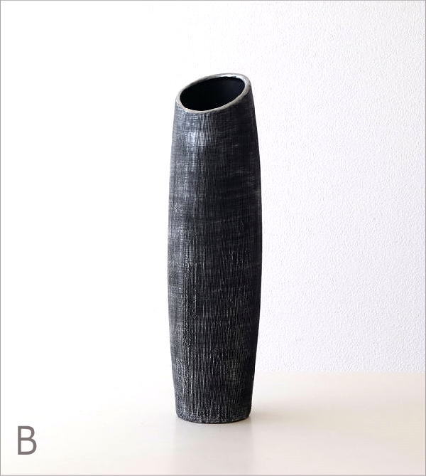 花瓶 おしゃれ 陶器 フラワーベース シンプル 和風 北欧 モダン インテリア 枝物 丸型 円柱 円筒 斜め デザイン 花器 花入れ 細い 細長い 縦長 ホワイト ブラック ブラウン ルミナス ロングベース 3カラー M |