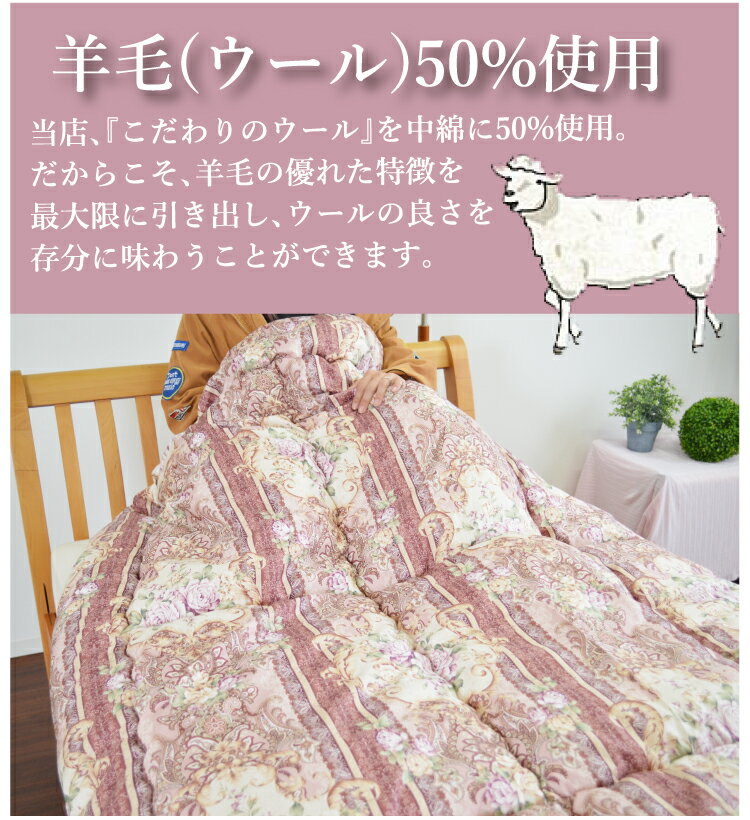 ★全品10%OFFクーポン[3/15限定] 【送料無料】日本製羊毛入掛け布団 (シングルロング) 洗える【羊ちゃん】羊毛 掛布団 かけふとん 日本製布団 羊毛 羊毛布団 洗える 丸洗いOK 清潔 掛け布団 直送 温かい 年中使用可能 冬は暖かく夏は涼しい【代引 |
