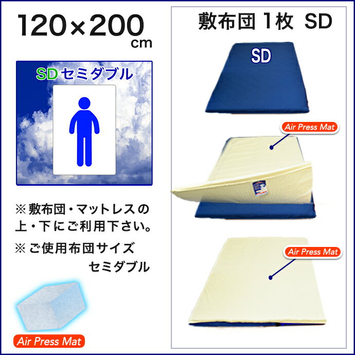 敷布団 セミダブル 日本製 120×200cm エアープレス FT 高反発 マット マットレス 高反発 低反発 固反発 硬め 固め 敷き布団 抗菌 防臭 オーバーレイ マット すき間 隙間 凹凸対策 厚さ 約3cm AIR PRESS 国産 【固め】【硬め】【薄め】 |
