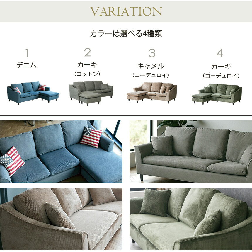 【月間優良ショップ受賞】3人掛けソファー ウッドフレーム コーデュロイ ファブリック カウチソファ 片肘 2人掛け 布 カウチソファー ブルー グリーン L型 スチール ローバック ソ カーキ 三人掛け 高級 モダン 3P ファブリックソファ おすすめ off |