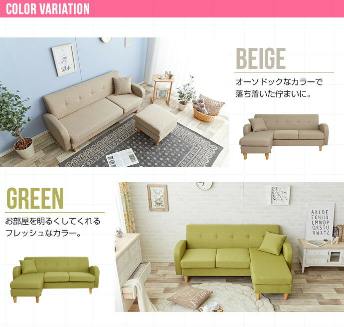 レイアウト組み換えOK ロースタイルでも使える 3人掛けカウチソファ Spica 選べる4カラー 北欧テイスト コーナーソファ リビング オーソドックス クッション付き 絶妙な弾力 上質なファブリック生地 レイアウト自由自在 オットマン 3P ECR107001 |